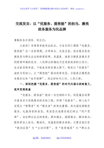 交流发言:以“优服务、提效能”的担当,擦亮政务服务为民品牌
