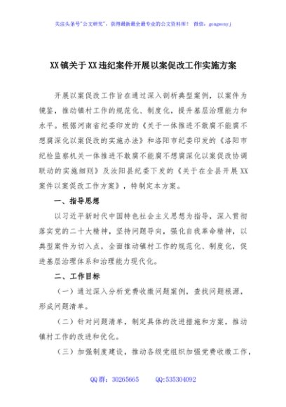 / XX镇关于XX违纪案件开展以案促改工作实施方案