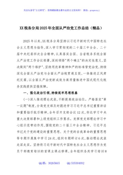 / XX税务分局2025年全面从严治党工作总结(精品)