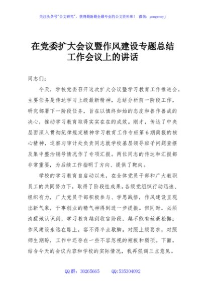 / 在党委扩大会议暨作风建设专题总结工作会议上的讲话