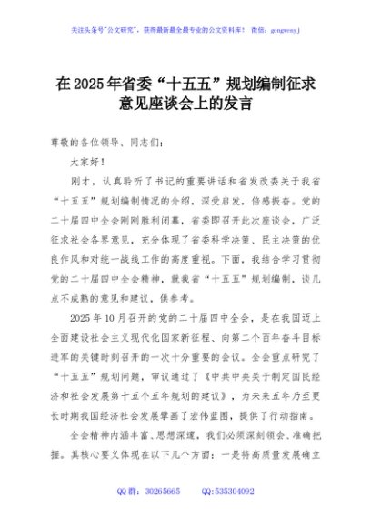 / 在2025年省委“十五五”规划编制征求意见座谈会上的发言