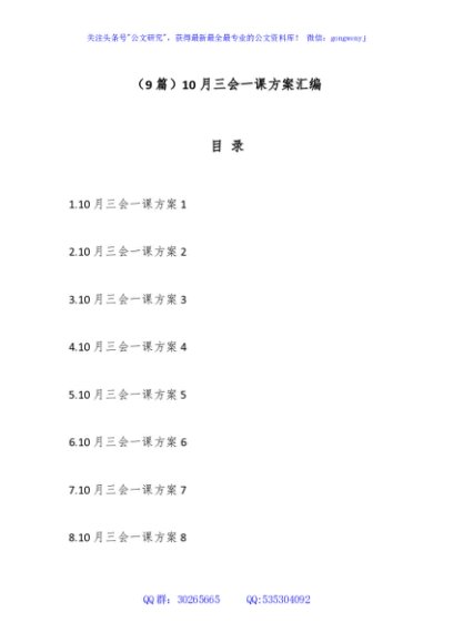 / (9篇)10月三会一课方案汇编