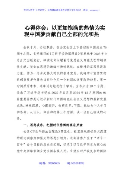 / 心得体会:以更加饱满的热情为实现中国梦贡献自己全部的光和热