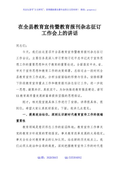 / 在全县教育宣传暨教育报刊杂志征订工作会上的讲话