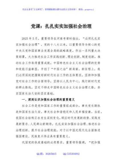 / 党课:扎扎实实加强社会治理