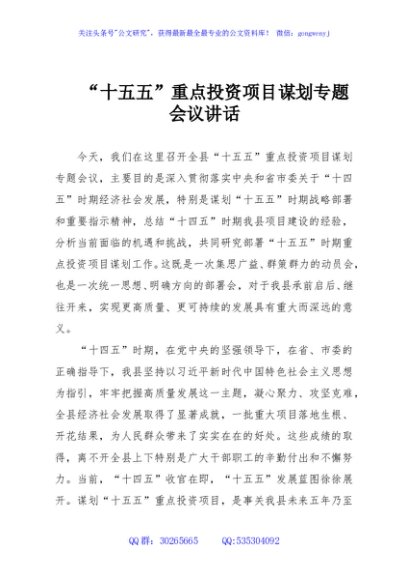 / “十五五”重点投资项目谋划专题会议讲话