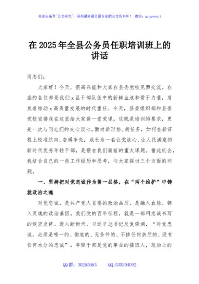 / 在2025年全县公务员任职培训班上的讲话
