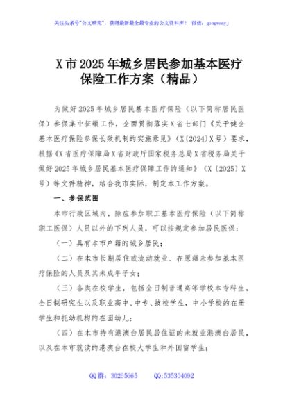 / X市2025年城乡居民参加基本医疗保险工作方案(精品)