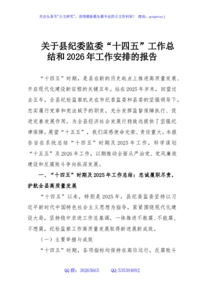 / 关于县纪委监委“十四五”工作总结和2026年工作安排的报告
