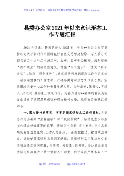 / 县委办公室2021年以来意识形态工作专题汇报