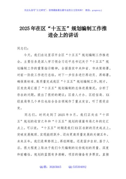 / 2025年在区“十五五”规划编制工作推进会上的讲话