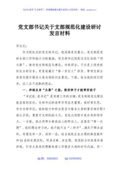/ 党支部书记关于支部规范化建设研讨发言材料