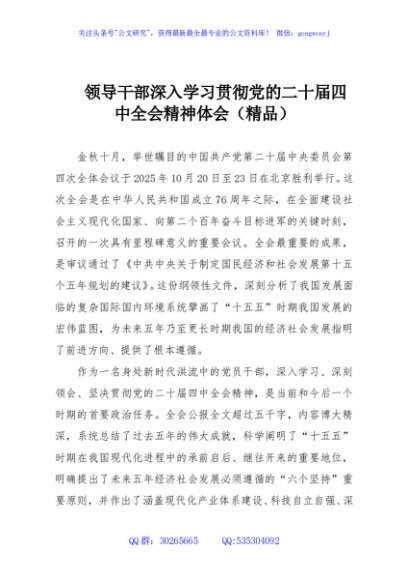 / 领导干部深入学习贯彻党的二十届四中全会精神体会(精品)