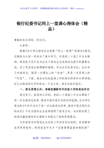 / 银行纪委书记同上一堂课心得体会(精品)
