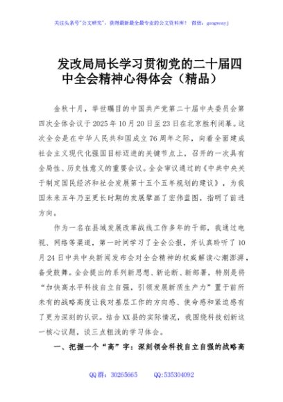 发改局局长学习贯彻党的二十届四中全会精神心得体会(精品)