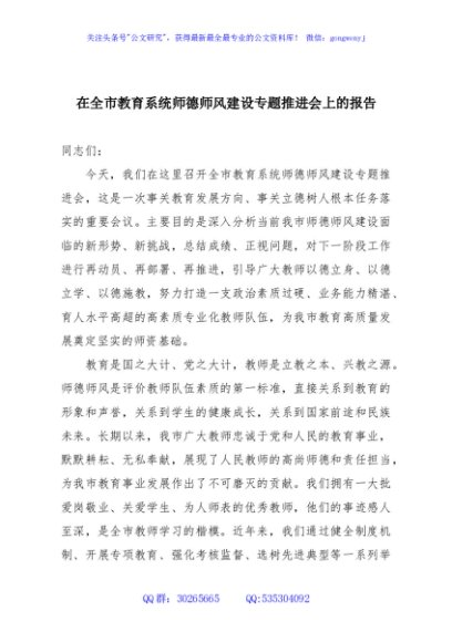 / 在全市教育系统师德师风建设专题推进会上的报告