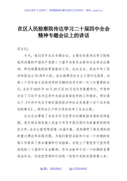 / 在区人民检察院传达学习二十届四中全会精神专题会议上的讲话