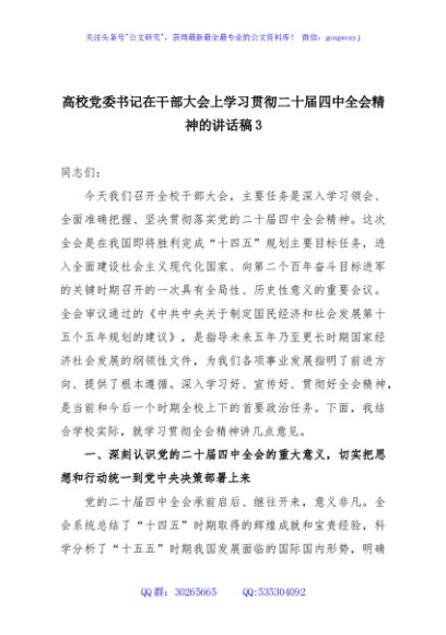 / 高校党委书记在干部大会上学习贯彻二十届四中全会精神的讲话稿3
