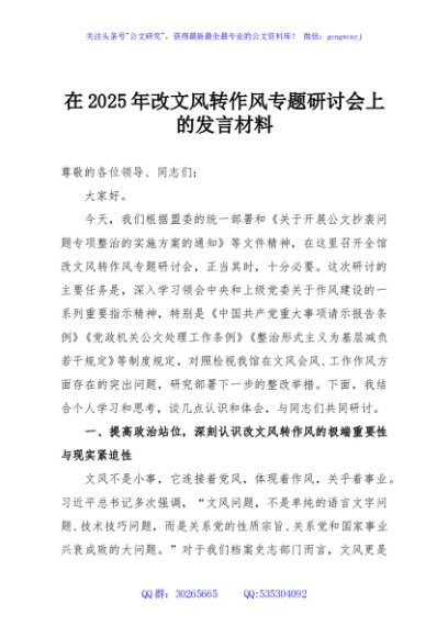 / 在2025年改文风转作风专题研讨会上的发言材料