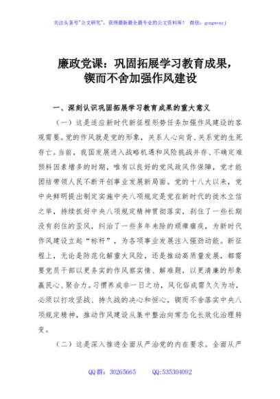 廉政党课:巩固拓展学习教育成果,锲而不舍加强作风建设
