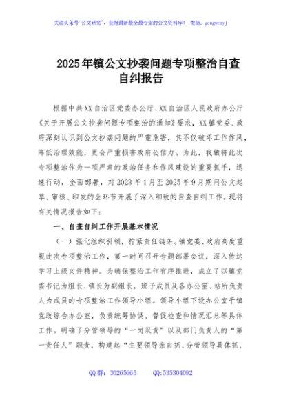 / 2025年镇公文抄袭问题专项整治自查自纠报告