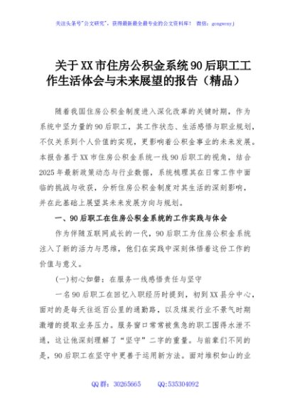 关于XX市住房公积金系统90后职工工作生活体会与未来展望的报告(精品)
