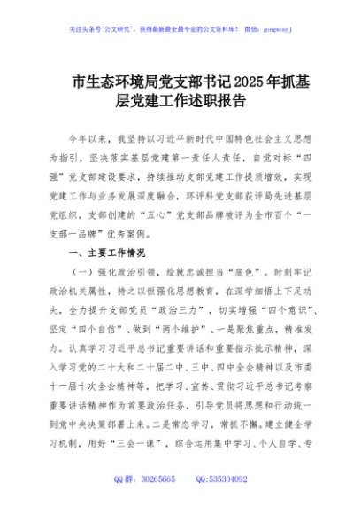 / 市生态环境局党支部书记2025年抓基层党建工作述职报告