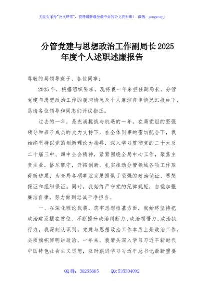 / 分管党建与思想政治工作副局长2025年度个人述职述廉报告
