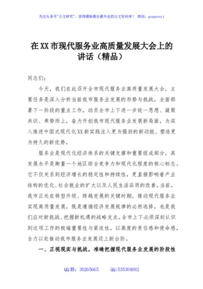 / 在XX市现代服务业高质量发展大会上的讲话(精品)