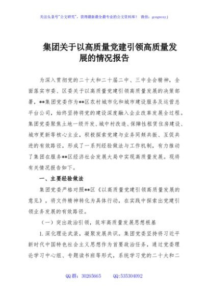 / 集团关于以高质量党建引领高质量发展的情况报告
