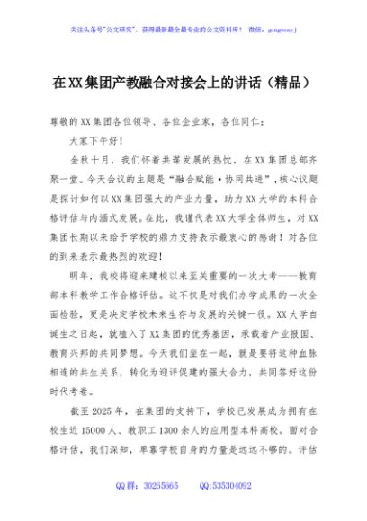 / 在XX集团产教融合对接会上的讲话(精品)