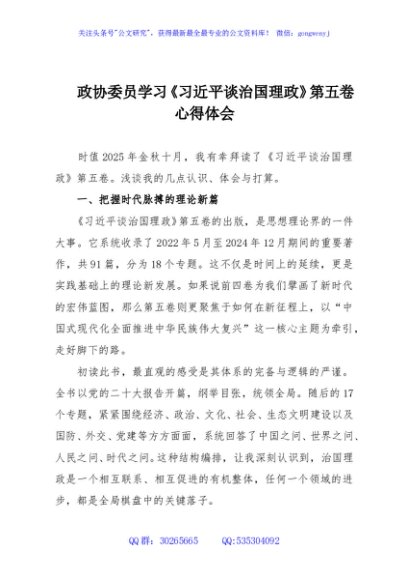 / 政协委员学习《习近平谈治国理政》第五卷心得体会