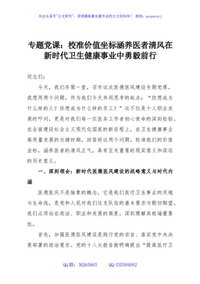 专题党课:校准价值坐标涵养医者清风在新时代卫生健康事业中勇毅前行