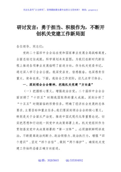 / 研讨发言:勇于担当、积极作为,不断开创机关党建工作新局面