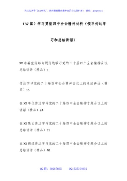 / (37篇)学习贯彻四中全会精神材料(领导传达学习和总结讲话)
