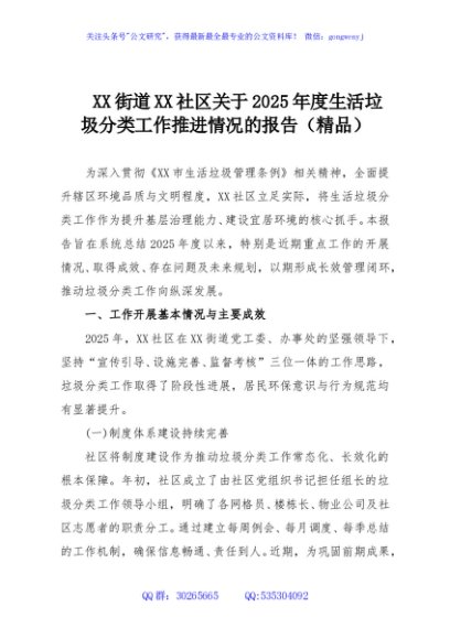 / XX街道XX社区关于2025年度生活垃圾分类工作推进情况的报告(精品)