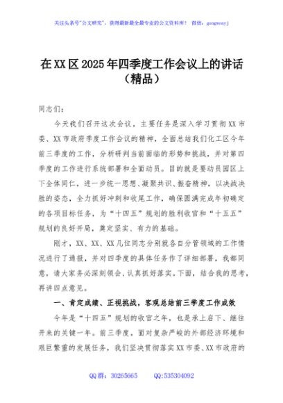 / 在XX区2025年四季度工作会议上的讲话(精品)