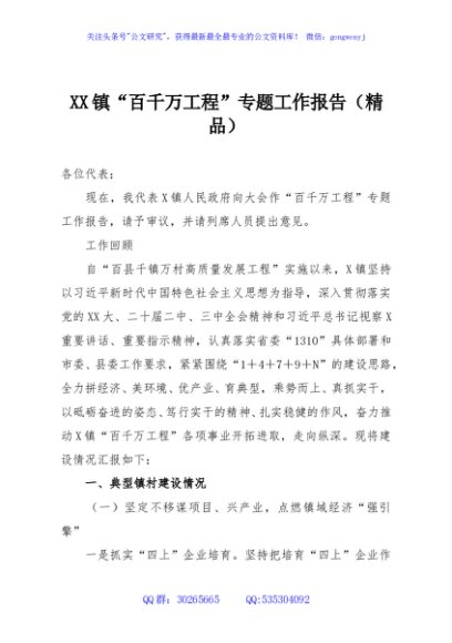 / XX镇“百千万工程”专题工作报告(精品)