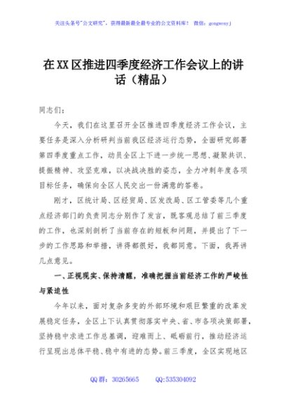 / 在XX区推进四季度经济工作会议上的讲话(精品)