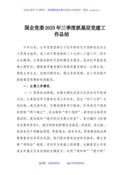 / 国企党委2025年三季度抓基层党建工作总结