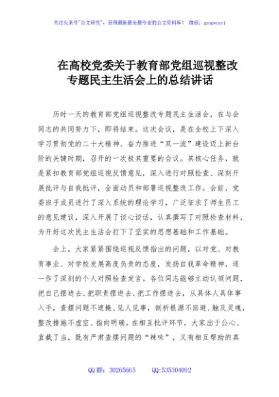 / 在高校党委关于教育部党组巡视整改专题民主生活会上的总结讲话