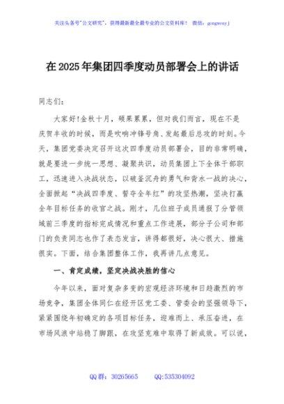 / 在2025年集团四季度动员部署会上的讲话