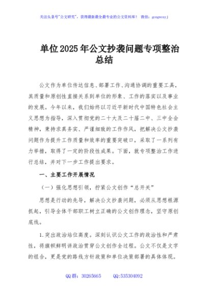 / 单位2025年公文抄袭问题专项整治总结