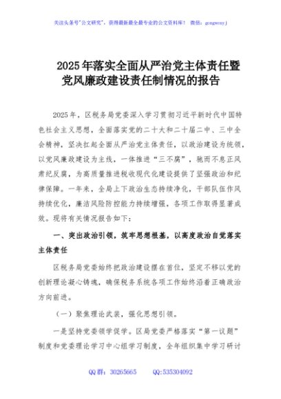 / 2025年落实全面从严治党主体责任暨党风廉政建设责任制情况的报告