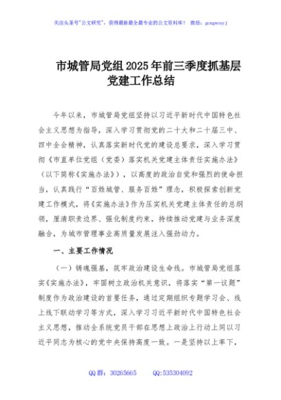 / 市城管局党组2025年前三季度抓基层党建工作总结