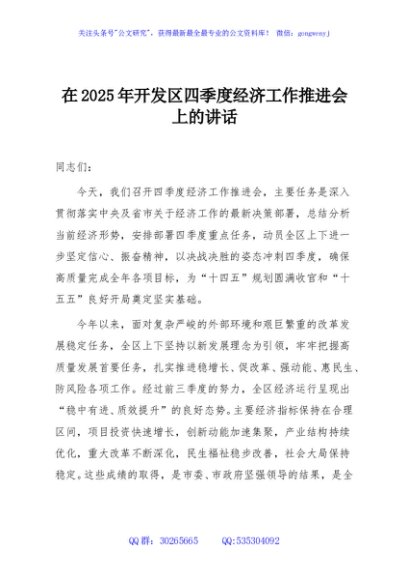 / 在2025年开发区四季度经济工作推进会上的讲话