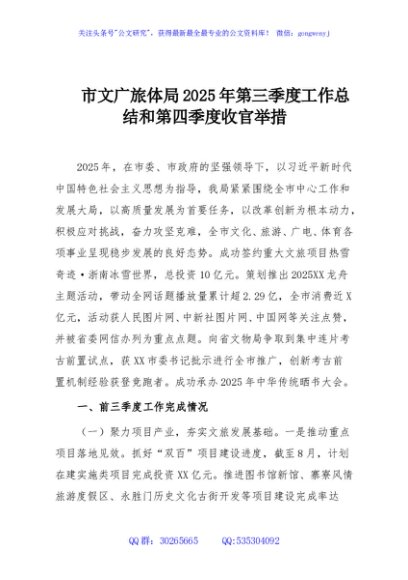 / 市文广旅体局2025年第三季度工作总结和第四季度收官举措