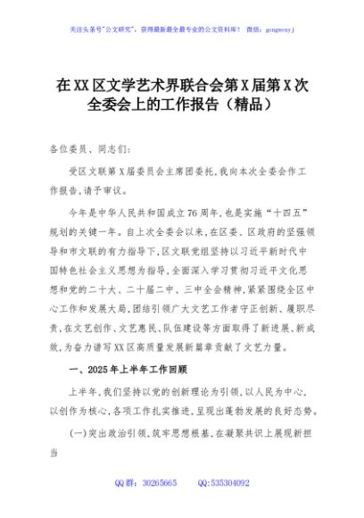 / 在XX区文学艺术界联合会第X届第X次全委会上的工作报告(精品)