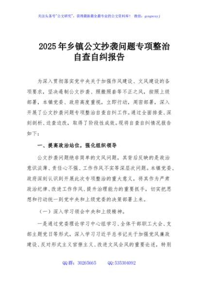 / 2025年乡镇公文抄袭问题专项整治自查自纠报告