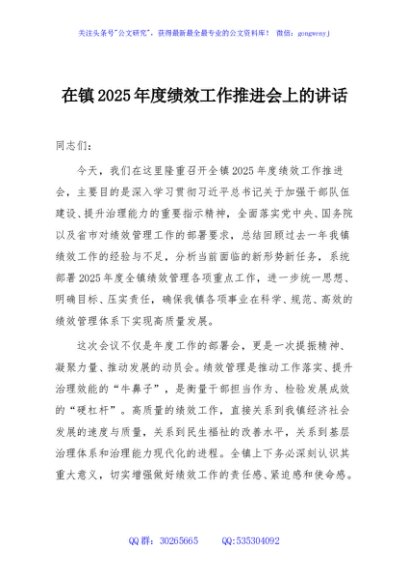 / 在镇2025年度绩效工作推进会上的讲话